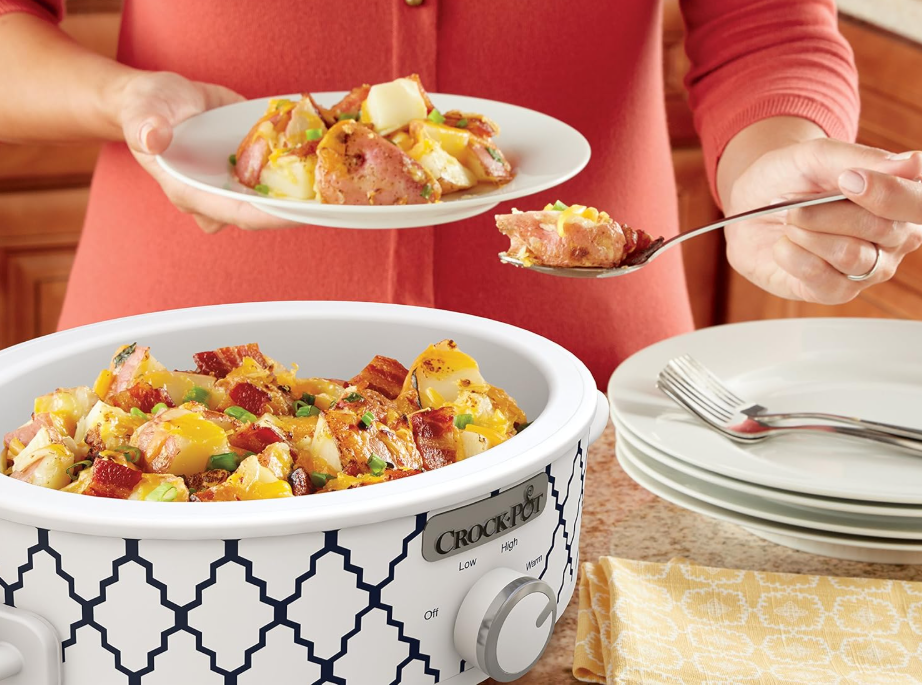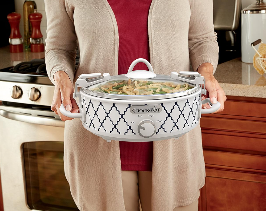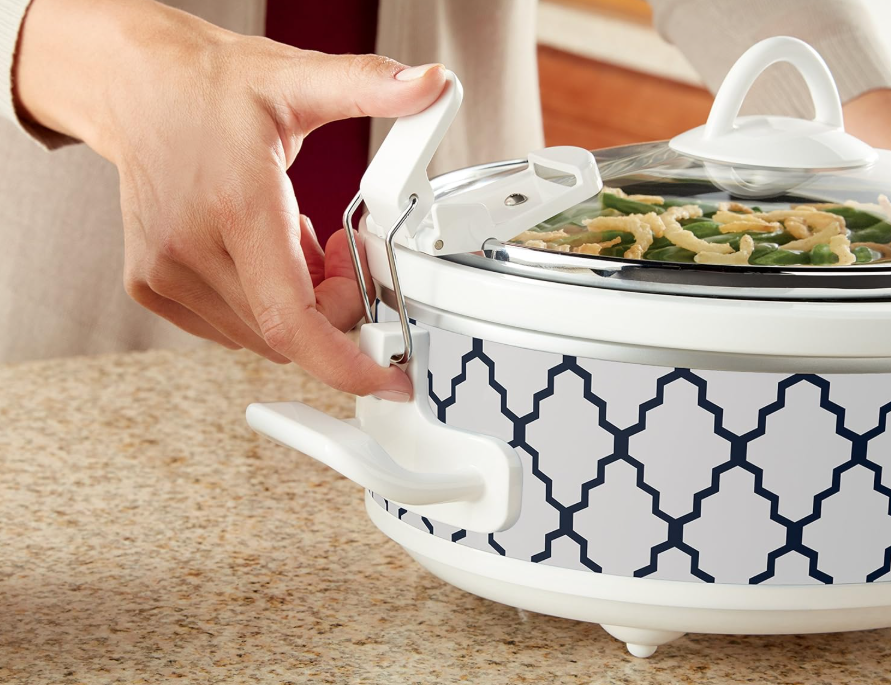 Crock-Pot Small 2.5 Quart Casserole Slow Cooker in White/Blue, Enjoy Eye-Catching Quick Meals, Durable and Compact