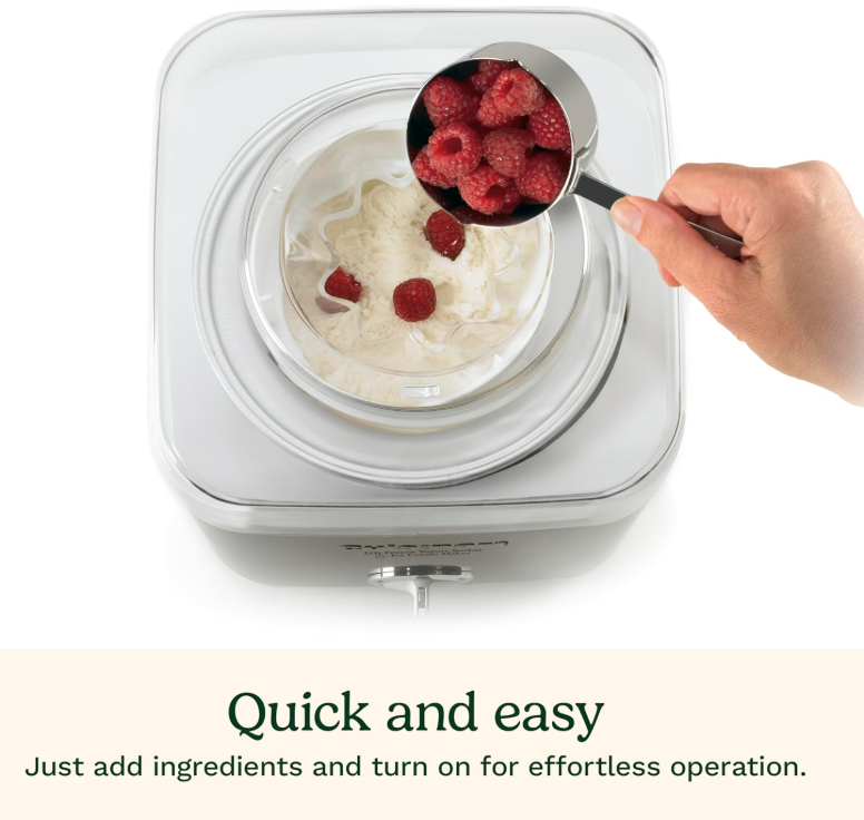 SUPERIOR FUNCTIONALITY: The brushed stainless steel ice cream machine features a fully automatic heavy-duty motor to make frozen desserts or drinks in under 30 minutes.