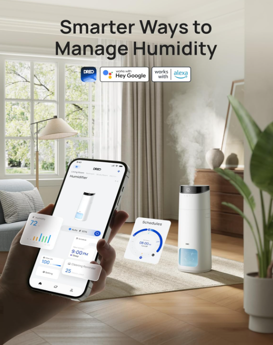 This cool mist humidifier lets you adjust humidity levels anytime, anywhere via the app, voice, or remote control. You can set precise on/off timers and personalized schedules to match your daily habits, ensuring you enjoy ideal comfort and seamless humidification whether you're at home or away.