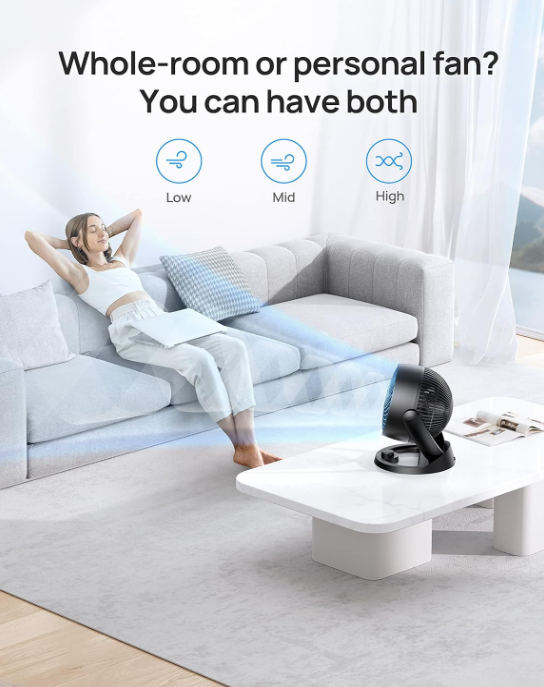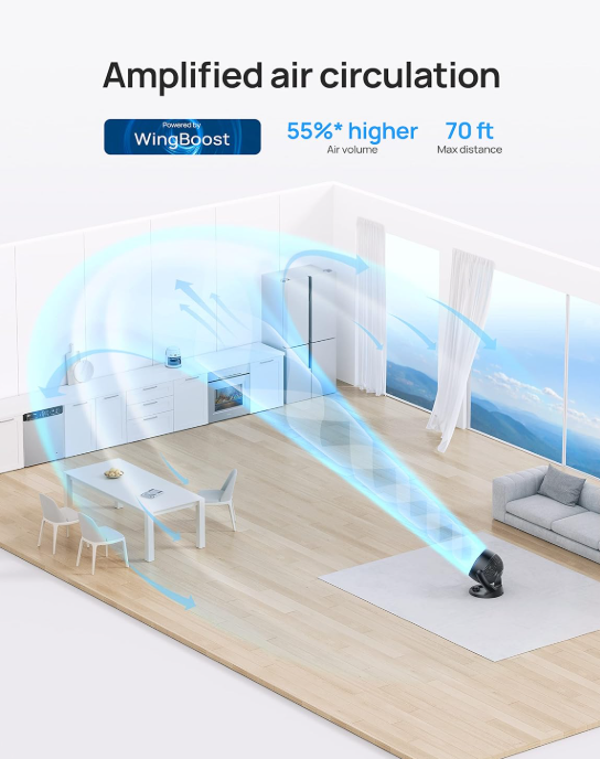 • Save energy every season: Pair it with multiple appliances to increase efficiency and reduce your energy bills. Air circulators increase the effect of ,space heaters, humidifiers, and purifiers by moving the air faster around the whole room.