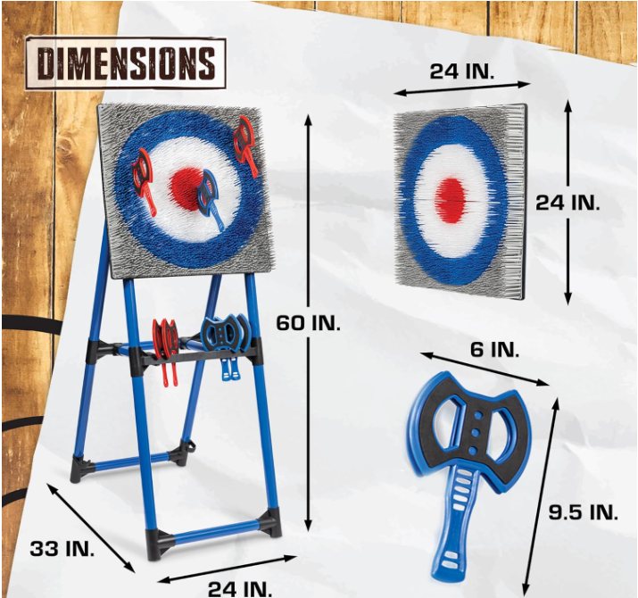• 8 THROWING AXES: Fun for all ages and skillsets – constructed out of plastic and foam and are specifically designed to stick in the unique bristle target.
