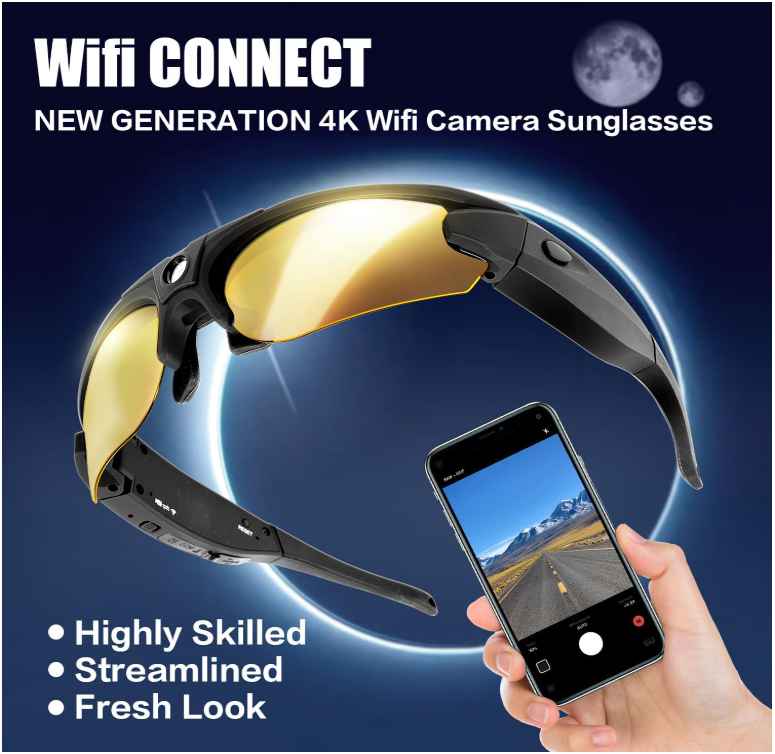 FlyGift Sport Camera with WiFi, Camera Sunglasses for Outdoor Sports Supports iOS&Android (64GB TF Card Included)