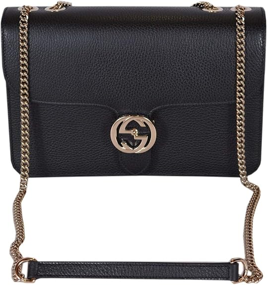 • Black Soft Calf Leather Fully Lined Two Open Compartments Gold-tone Interlocking GG Hardware Gold-tone Chain Shoulder Strap