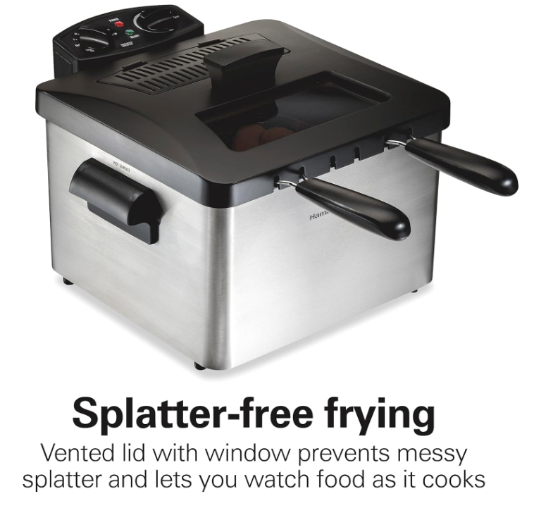 SPLATTER-FREE FRYING: Preparing crispy, delicious food in an electric deep fryer is not only easier than using a pot on your stove, it's less messy. The vented lid prevents messy splatter as you cook, and the window lets you watch food as it cooks.