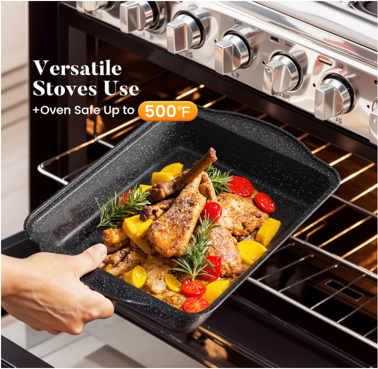 Kitchen Induction Cookware & Bakeware Set - 30 Piece Black Granite Cooking Pans Set, Non-Stick Pots and Pans Set