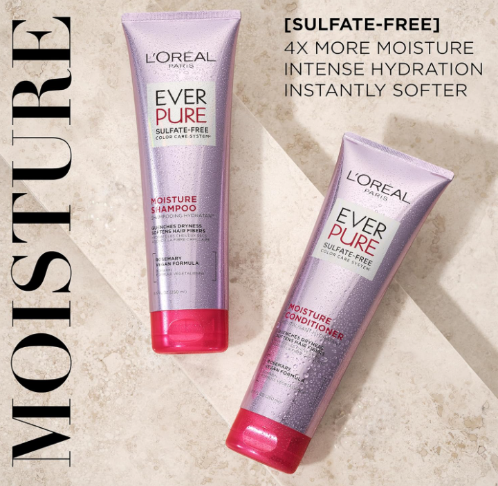 • Moisturizing Shampoo and Conditioner Set: L'Oreal Paris EverPure Moisture Sulfate Free Shampoo and Conditioner provides moisture without the weigh down. Our hair care system with is formulated for color treated and dry hair