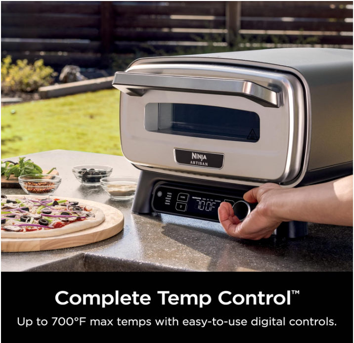 Ninja Artisan Outdoor Pizza Oven, 12-inch, 3-minute Pizza, Neapolitan, Thin Crust, New York Chicago, Custom, 700F Max Temperature, Electric Heat, Bake, Broil, Proof, Warm, MO201