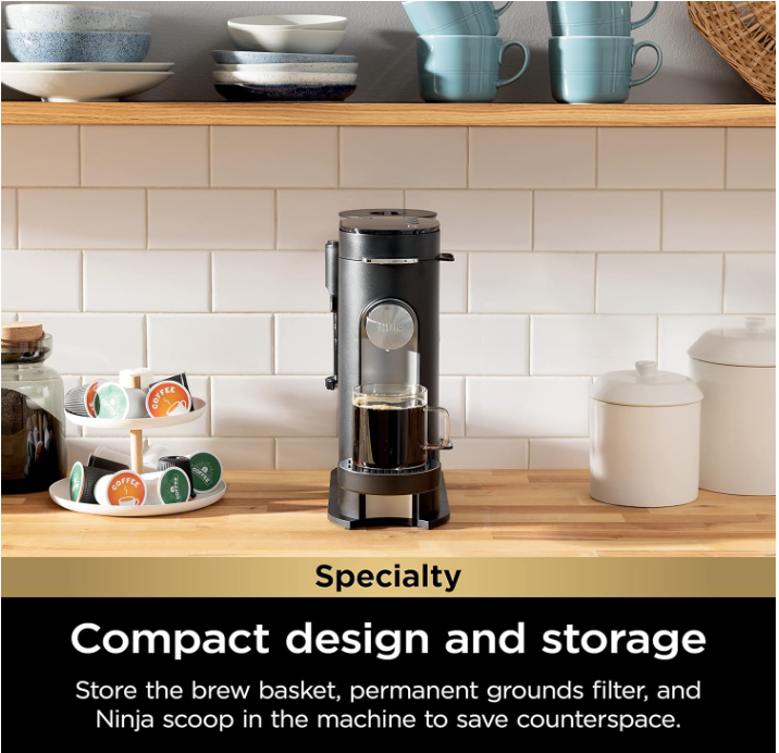 Ninja | Coffee Maker | Single Serve |Brew with Coffee Pods & Grounds| Compatible with K-Cup Coffee Pods | 4 Brew Styles, up to 24oz Cup Sizes & 56oz Removable Reservoir | Black | PB051