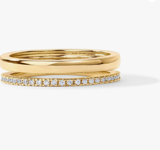 PAVOI 18K Gold Plated Cubic Zirconia Dual Stacking Rings for Women | Gold Eternity Band for Women | Thumb Ring