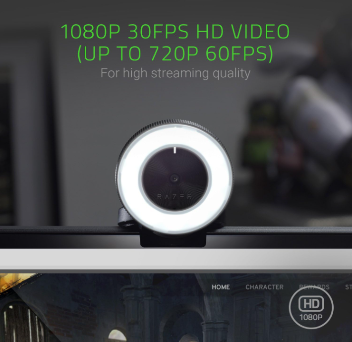 Razer Kiyo Streaming Webcam: 1080p 30 FPS / 720p 60 FPS - Ring Light w/Adjustable Brightness - Built-in Microphone - Advanced Autofocus