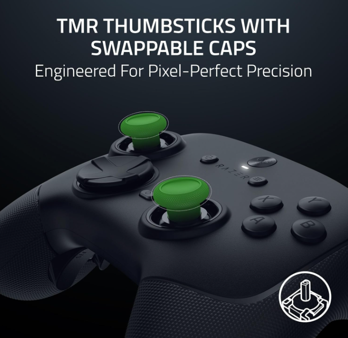 TMR THUMBSTICKS WITH SWAPPABLE CAPS — Fine-tuned for the most precise in-game control, dominate with laser-sharp aim using anti-drift magnetic TMR thumbsticks that have evolved beyond typical Hall Effect designs