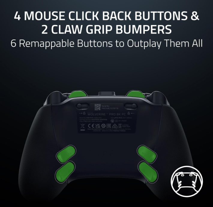 4 MOUSE CLICK BACK BUTTONS & 2 CLAW GRIP BUMPER — Enjoy the same ultra-responsive actuation found in Razer's top gaming mice with 4 buttons built into the controller’s ergonomic, rubberized handles—topped with 2 claw grip bumpers for even more control