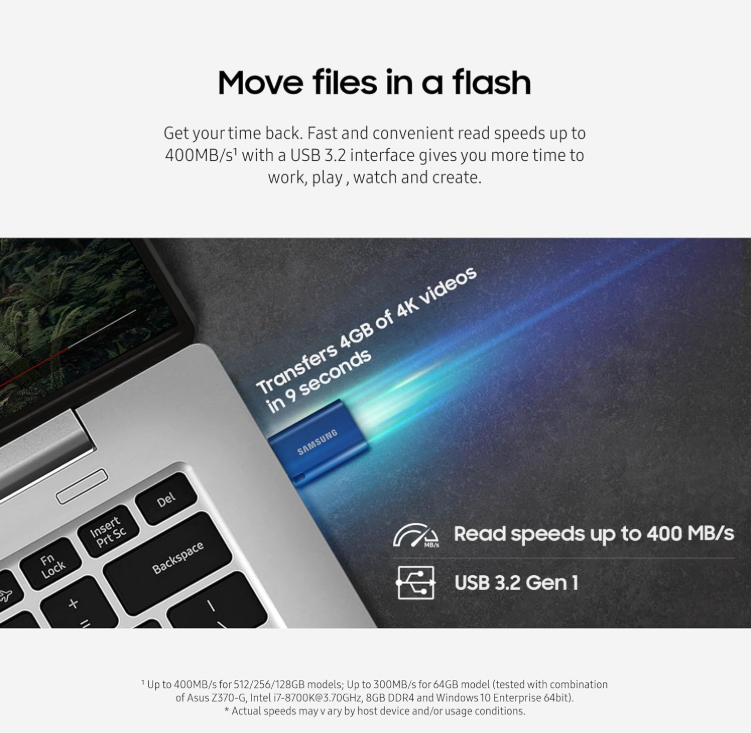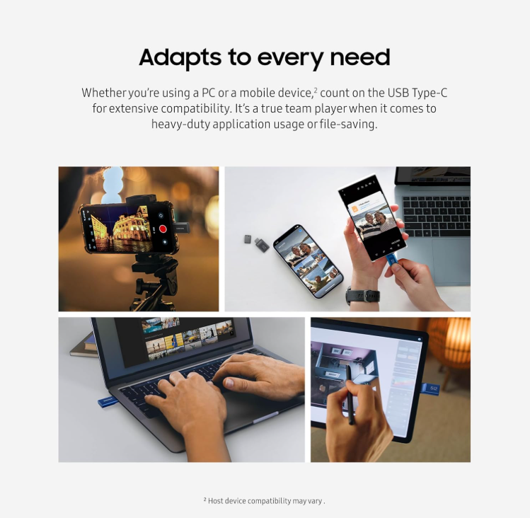 • TOUGH & TRUSTED***: Files stay secure, no matter the terrain; Samsung's flash memory technology makes the Type-C a trustworthy drive to store your valuable data; It's waterproof, shock-proof, magnet-proof, temperature-proof, and X-ray-proof body, plus it's backed by a 5-year limited warranty