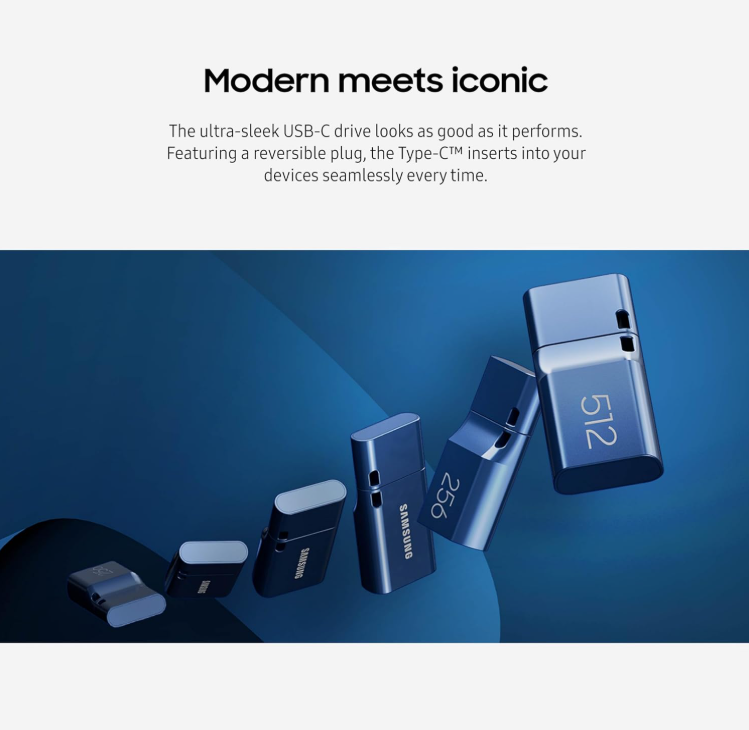 • MODERN MEETS ICONIC: The ultra-sleek USB-C drive looks as good as it performs; Featuring a reversible plug, the Type-C inserts into your devices seamlessly every time; Transfer large files with style and ease
