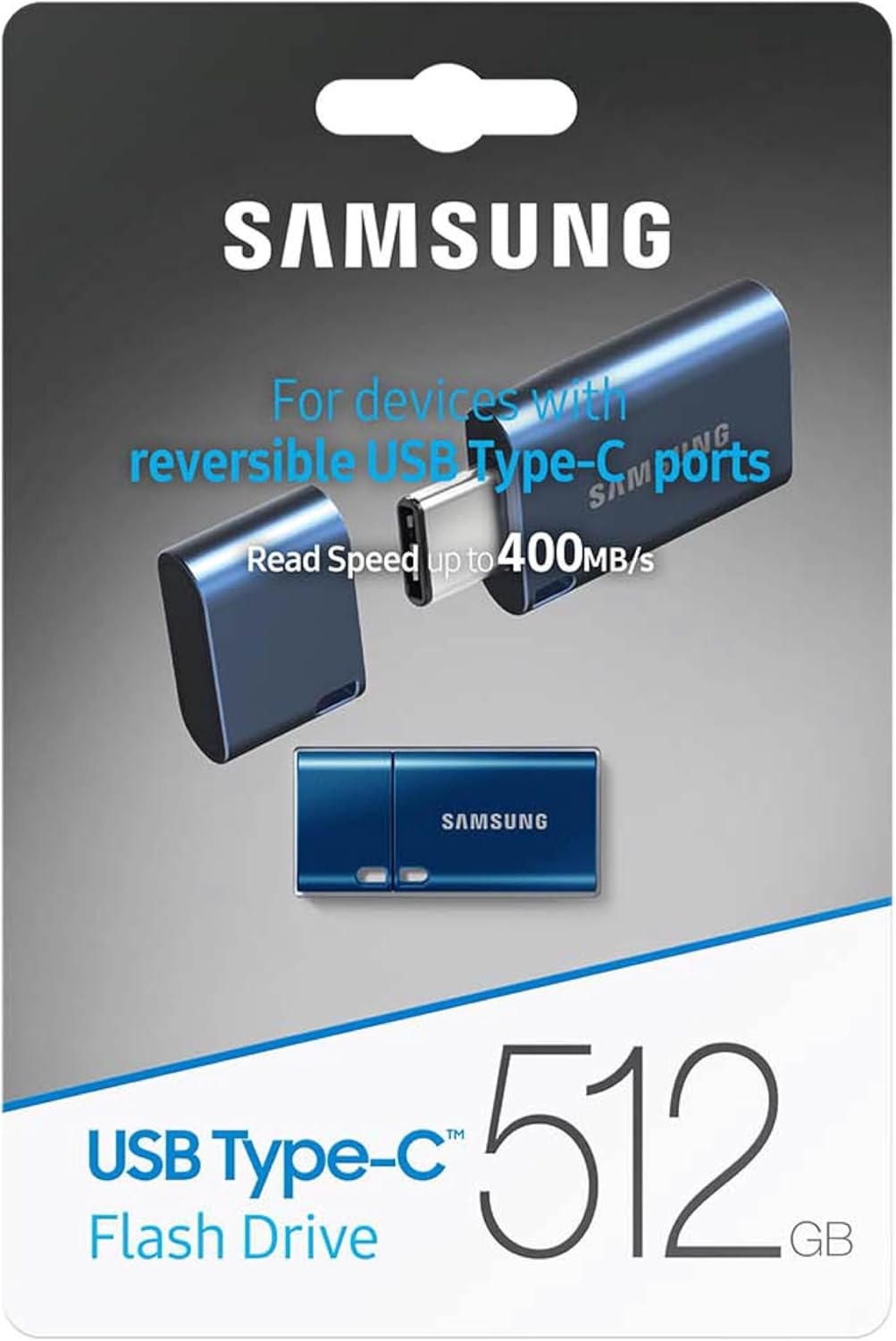 Samsung Type-C USB Flash Drive, 512GB, Transfers 4GB Files in 11 Secs w/Up to 400MB/s USB 3.2 Gen 1 Read Speeds, Compatible w/USB 3.0/2.0, Waterproof, 2022, Blue, MUF-512DA/AM