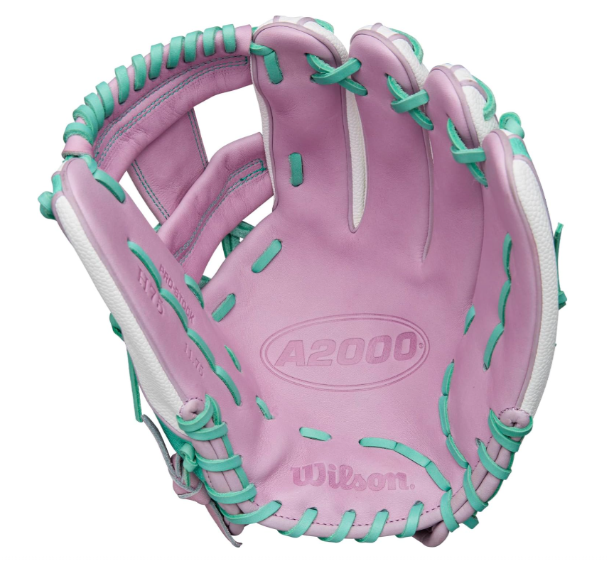 • Wilson Fall 2025 A2000 FP1175SS 11.75” Infield Fastpitch Softball Glove - Right Hand Throw, White/Seafoam/Lavender